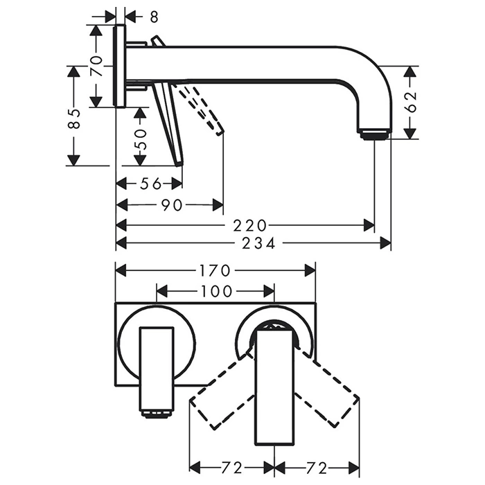 Встраиваемый смеситель для раковины AX Citterio с панелью и изливом 220 мм, хром (39119000)
