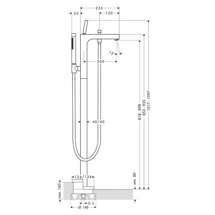 Да, смеситель AX Citterio функционально подходит для стандартных ванн, включая многие модели с гидромассажем. Однако его установка не влияет на работу гидромассажной системы, которая имеет отдельное управление и электропитание. Перед покупкой рекомендуется уточнить конструктивные особенности вашей ванны и схему подведения воды.