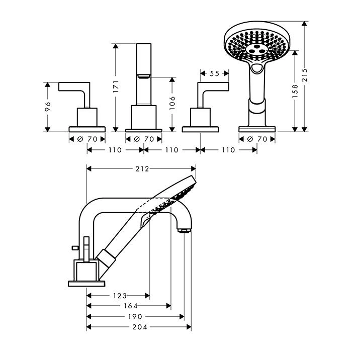 Вы получаете готовое к установке решение: сам смеситель для ванны AX Citterio, комплект крепежных элементов и декоративных накладок, а также технический паспорт с гарантией производителя.