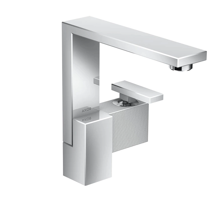 Смеситель AX Edge изготовлен из высококачественной латуни с покрытием хром. Излив и рукоятки имеют алмазную огранку для визуального эффекта и устойчивости к следам от пальцев.