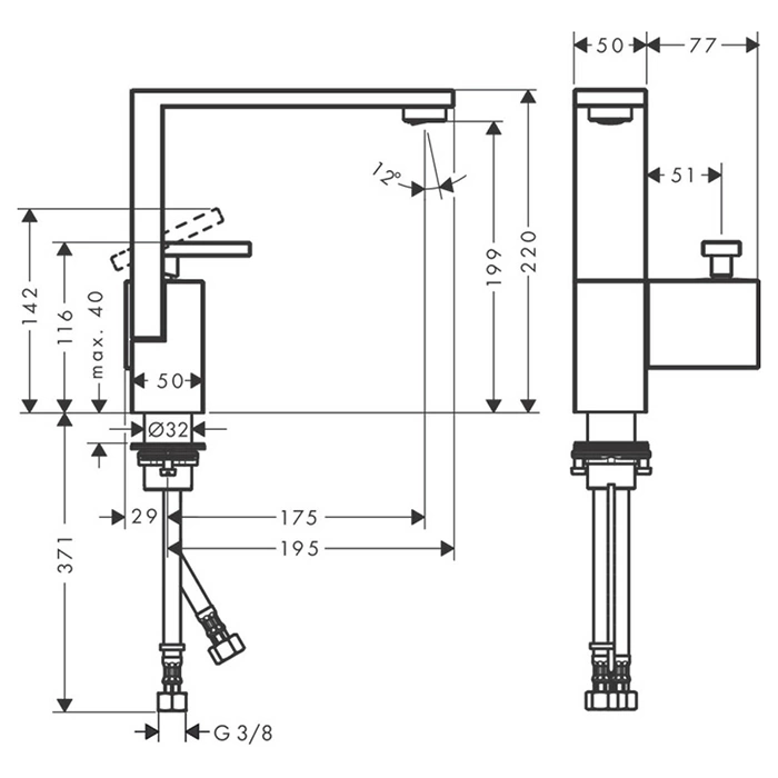 Смеситель AX Edge с инновационным донным клапаном стандартно монтируется на раковину с одним монтажным отверстием. Рекомендуем проверить соответствие диаметров перед покупкой.