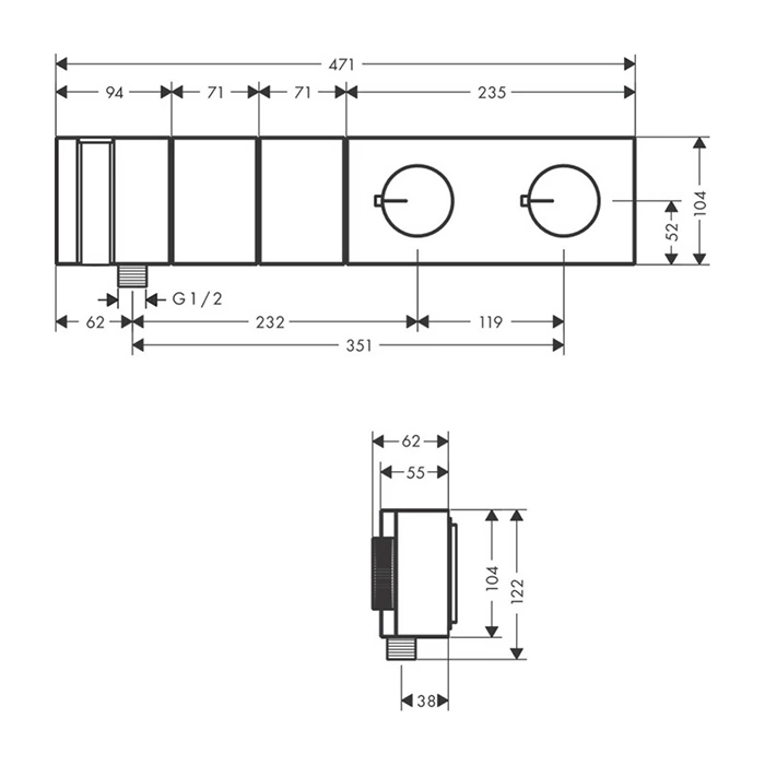 Во время подключения горячей и холодной воды к термостату жизненно важно соблюсти маркировку. Подача горячей воды (красная метка) всегда должна подключаться слева, а холодной (синяя метка) - справа, если смотреть на устройство спереди. Перепутанные подводки приведут к тому, что термостат будет работать наоборот, пытаясь смешивать воду, что сделает его использование небезопасным.
