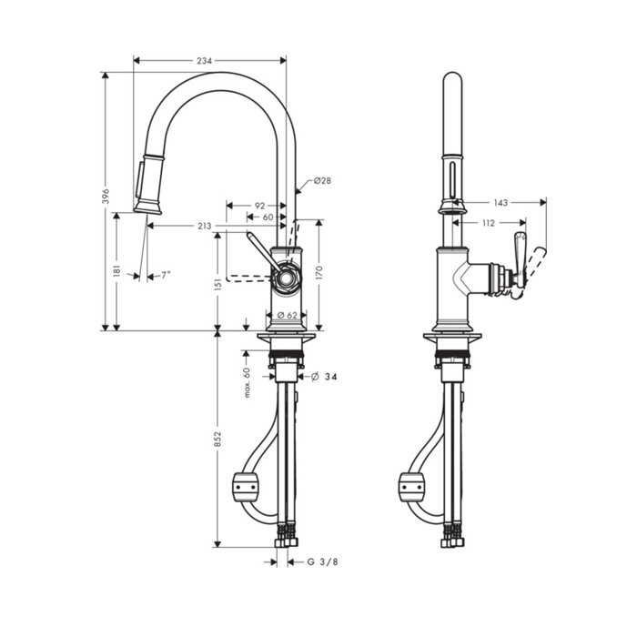 Обращайте внимание на длину и материал гибкой подводки. Для комфортного использования выдвижного душа шланг должен быть не короче 1.2 метра. Оплетка из нержавеющей стали прослужит дольше резиновой, особенно в условиях постоянного перемещения лейки.