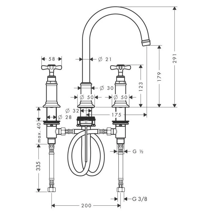 Данный смеситель AX Montreux предназначен для монтажа на раковину или столешницу с тремя монтажными отверстиями. Стандартное расположение: центральное отверстие для носика смесителя и два боковых для рукояток управления горячей и холодной водой.