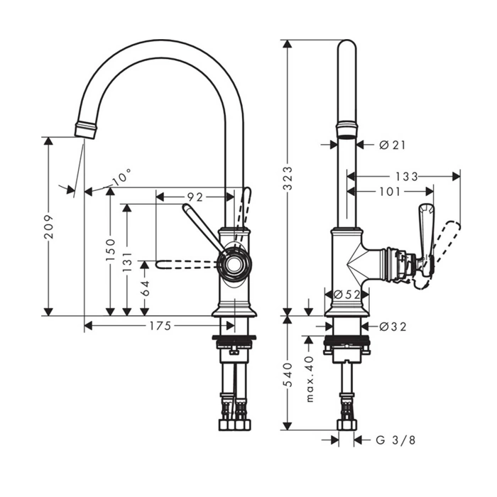 Длина излива у модели AX Montreux (16518990) составляет 175 мм. Это стандартный размер, обеспечивающий удобное пользование раковиной.