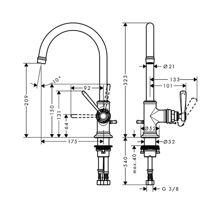 Данная модель предназначена для стандартного монтажа на раковину или столешницу. Для установки требуется одно монтажное отверстие диаметром 35 мм.