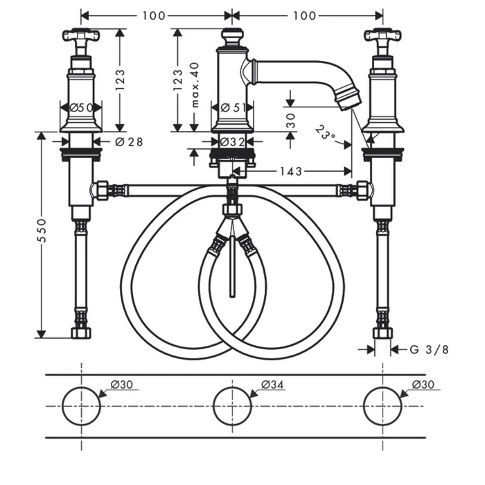Перед покупкой обязательно измерьте расстояние между центрами крепежных отверстий на вашей раковине или столешнице. Модель Montreux рассчитана на стандартную разметку в 3 отверстия (для смесителя и отдельных ручек подачи воды), но лишняя проверка избавит вас от неожиданностей во время монтажа.