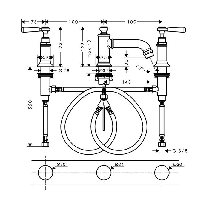 Смеситель AX Montreux предназначен для стандартной установки на раковину или столешницу. Важно проверить расстояние между отверстиями для подводящих шлангов (межосевое расстояние), которое обычно составляет 100 или 150 мм, а также диаметр отверстия под смеситель на вашей раковине. Рекомендуем сверить параметры перед покупкой.