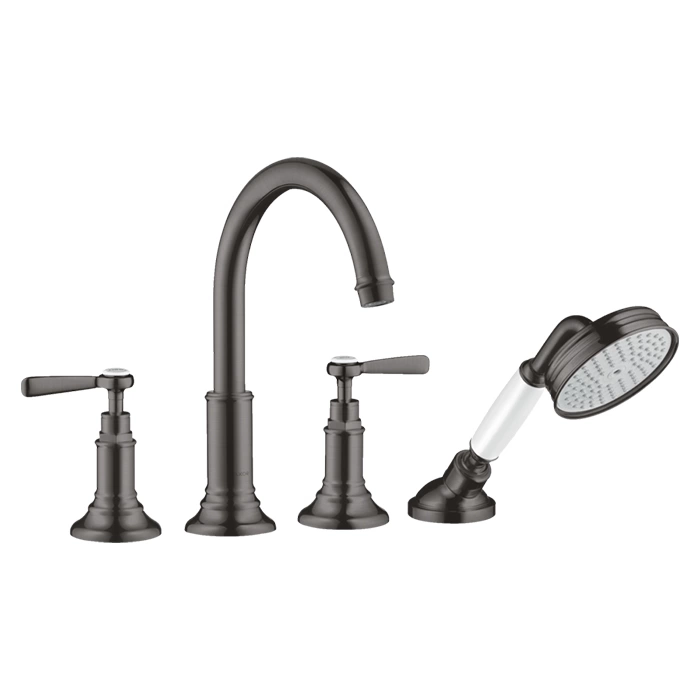Смеситель для ванны AX Montreux изготовлен из высококачественной латуни, что обеспечивает долговечность и коррозионную стойкость. Финальное покрытие - матовый черный хром.