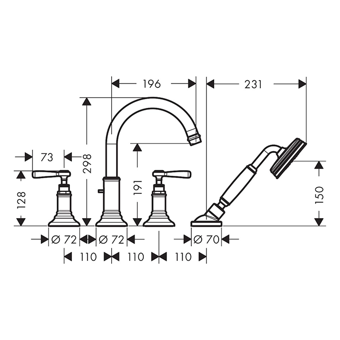 Смеситель AX Montreux оснащен удобным переключателем "душ-излив", позволяющим перенаправлять воду. Излив имеет достаточную длину и высоту для комфортного набора воды в ванну.