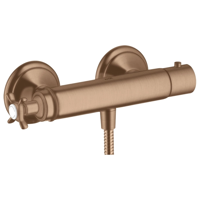 Термостат для душа AX Montreux в цвете шлифованное красное золото (16261310) - это гармония передовых технологий и изысканного дизайна. Это устройство, которое раз и навсегда решает проблему колебаний температуры воды, обеспечивая комфорт и безопасность каждой процедуры.