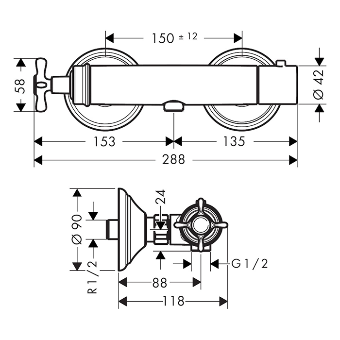 В базовую комплектацию термостата для душа AX Montreux, как правило, входят сам термостатический картридж с рукоятками, лицевая панель (рамка), эксцентрики для подключения к водопроводу и крепежные элементы. Душевая стойка, лейка и шланг приобретаются отдельно, если не указано иное.