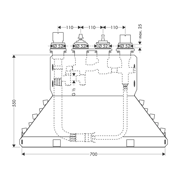 Скрытая часть AX MyEdition - это элемент инсталляции для смесителя, который монтируется в борт ванны. Она предназначена для скрытого монтажа смесителя, обеспечивая эстетичный вид и удобство использования. Данная модель предназначена для ванн с четырьмя монтажными отверстиями.