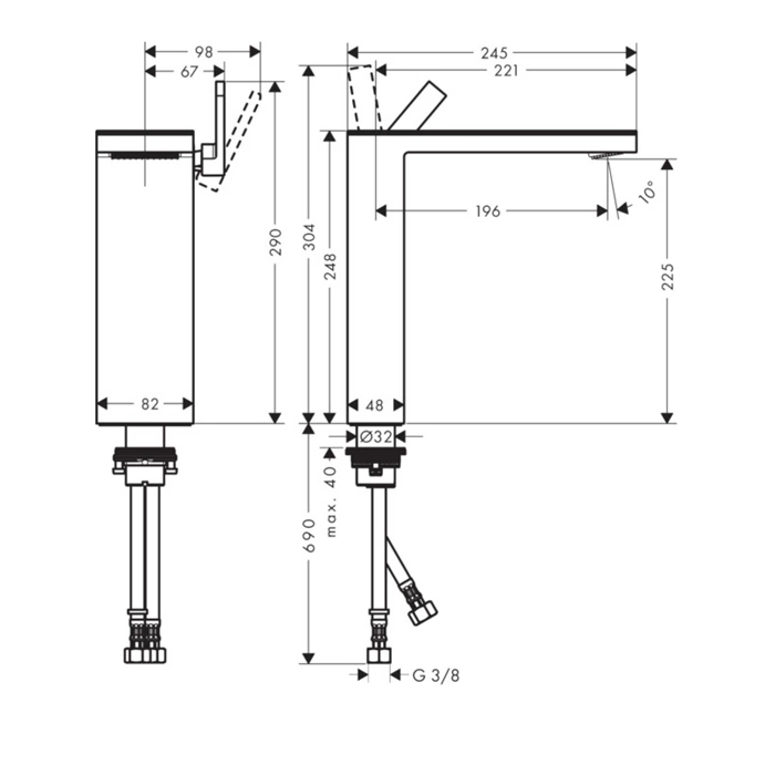 Смеситель для раковины AX MyEdition (230 мм, 1 отверстие, хром) со сливным гарнитуром (47022000)