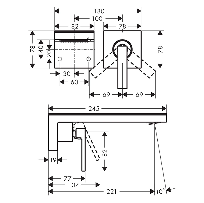 Настенный смеситель AX MyEdition предназначен для установки над раковиной, ванной или биде. Для монтажа над раковиной важно учитывать расстояние между отверстиями на раковине для подвода воды (межосевое расстояние) или возможность его скрытого подвода через стену.