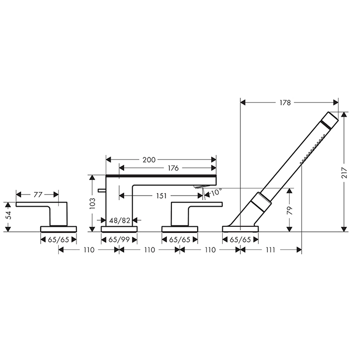 - Комплектация: смеситель для ванны с механизмом переключения на душ, без декоративной панели.