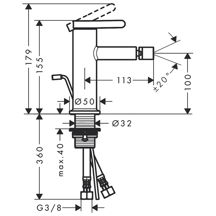 Данная модель предназначена для установки на борт раковины или биде (монтаж на горизонтальную поверхность). Для монтажа требуется одно стандартное монтажное отверстие.