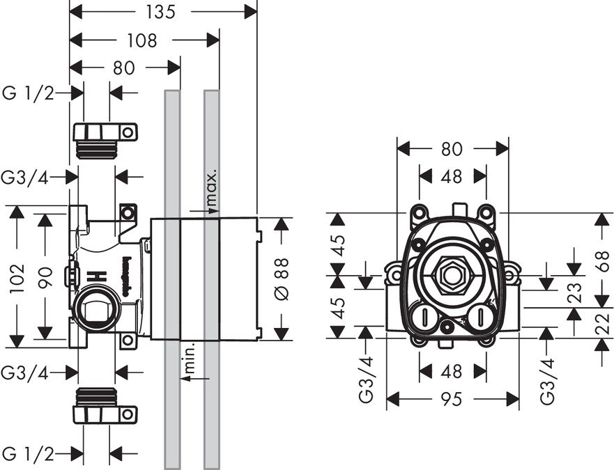 - Готовое решение для скрытого монтажа термостатов серии AX ShowerCollection.