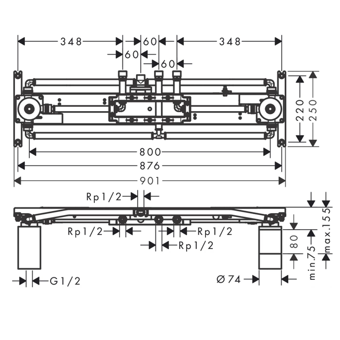 Четыре форсунки в данной модели создают равномерный поток. Для идеального результата отрегулируйте их направление и напор до финальной заделки стены. Учитывайте, что после установки душевой панели или лейки сделать это будет крайне затруднительно.