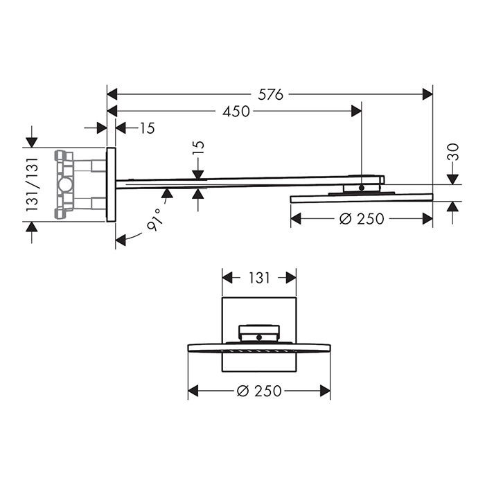 Верхний душ AX ShowerSolution 250 мм с 2 струями и держателем 450 мм (настенный, сталь) (35296800)