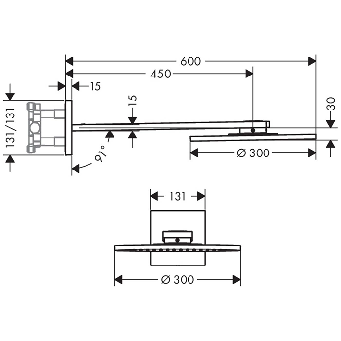 Верхний душ AX ShowerSolution 300 мм с держателем 450 мм, настенный, 2 струи, хром (35303000)