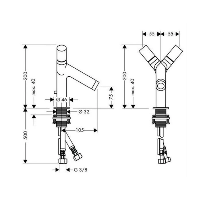 Модель AX Starck 10030000, указанная в названии, является смесителем исключительно для раковины с донным клапаном и двумя рукоятками. Функция переключения на душ у данной конструкции не предусмотрена.