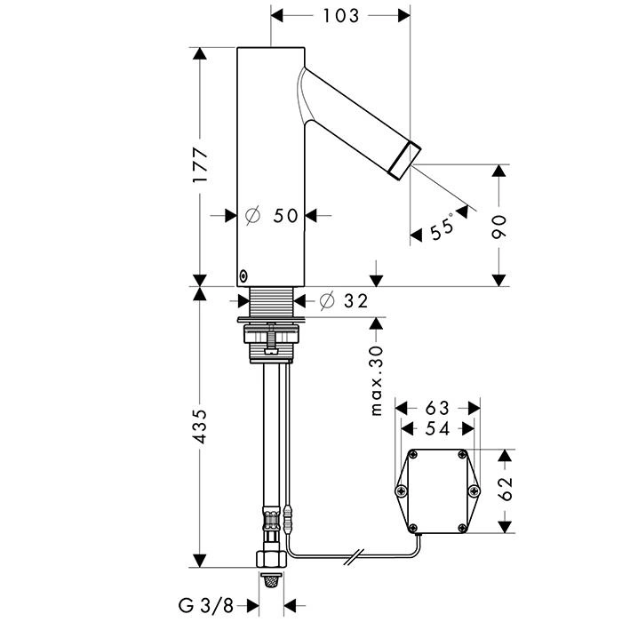Данная модель предназначена для стандартной установки на раковину или столешницу (монтаж на одно монтажное отверстие). Расстояние между центрами подводящих шлангов (межосевое расстояние) составляет стандартные 100 мм или 4 дюйма.
