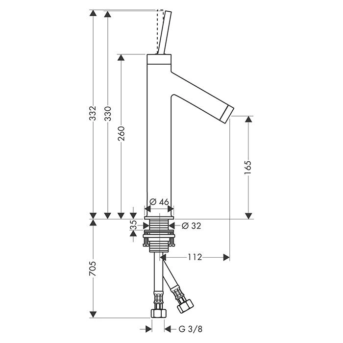 Данная модель смесителя AX Starck предназначена для настенного монтажа. Он крепится непосредственно к стене или вертикальной поверхности над раковиной, что позволяет экономить пространство на самой раковине или столешнице.