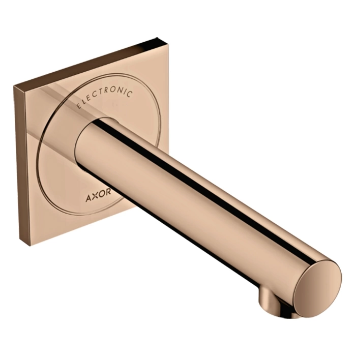 Настенный электронный смеситель AX Uno - это синтез передовых технологий и изысканного дизайна. Модель 45110300 в отделке полированное красное золото станет акцентным элементом современной ванной комнаты или кухни, предлагая бесконтактный комфорт и высочайшую гигиеничность.