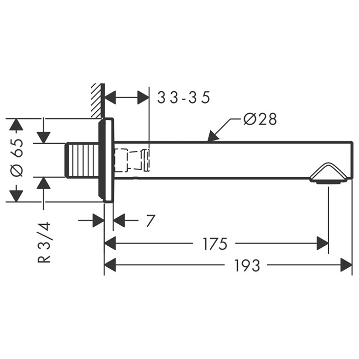 Настенный излив для ванны AX Uno, 175 мм, хром (45410000)