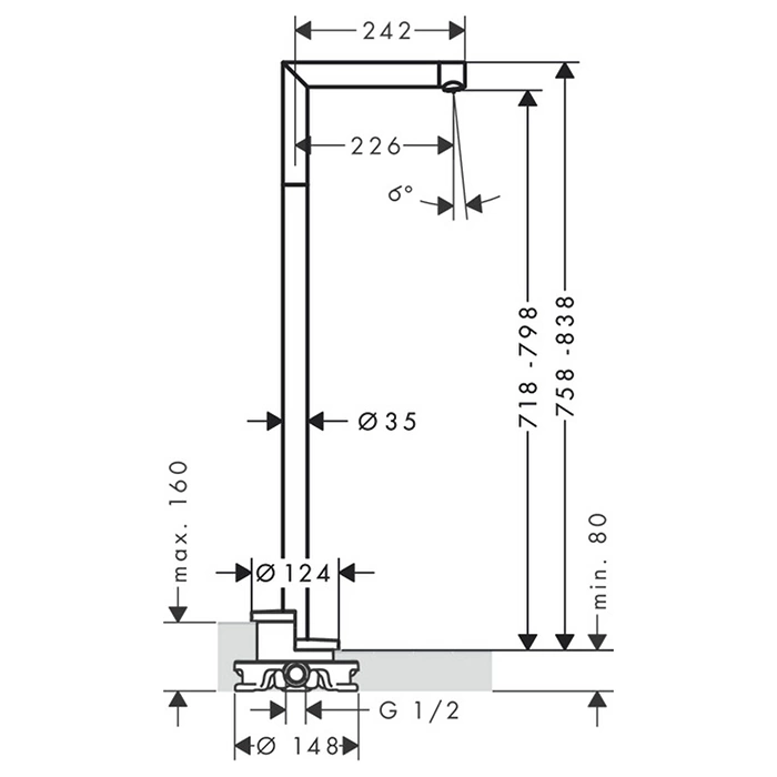 Напольный излив AX Uno с выступом 226 мм предназначен для стационарной установки рядом с ванной. Он оптимально подходит для отдельно стоящих ванн (купелей), где нет возможности или желания монтировать излив на борт или стену.
