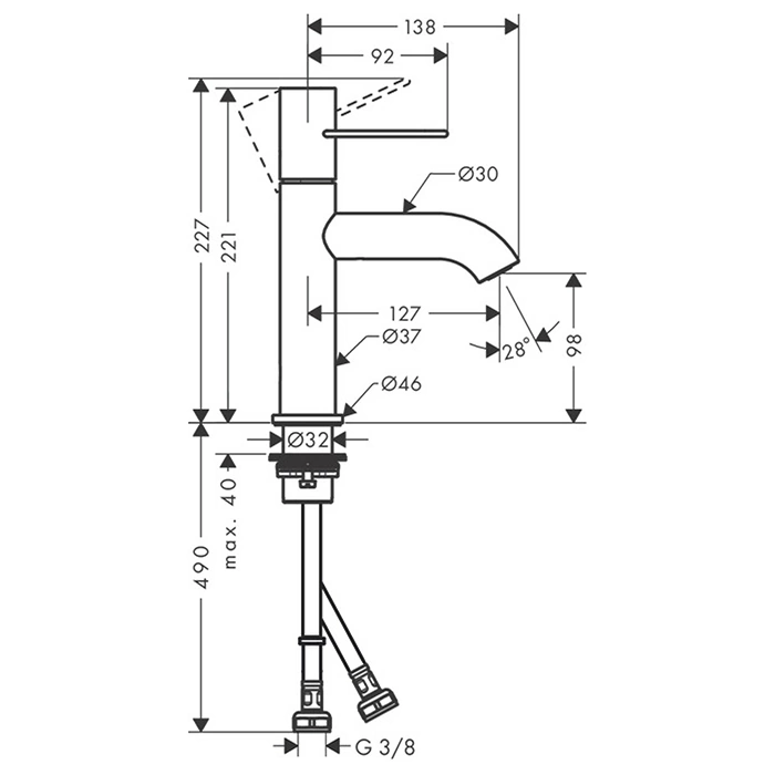 Смеситель AX Uno предназначен для установки на раковину или столешницу. Для подключения используются стандартные гибкие подводки. Наличие донного клапана в комплекте (38026330) избавляет от необходимости отдельного поиска и покупки этой детали, что упрощает процесс монтажа.