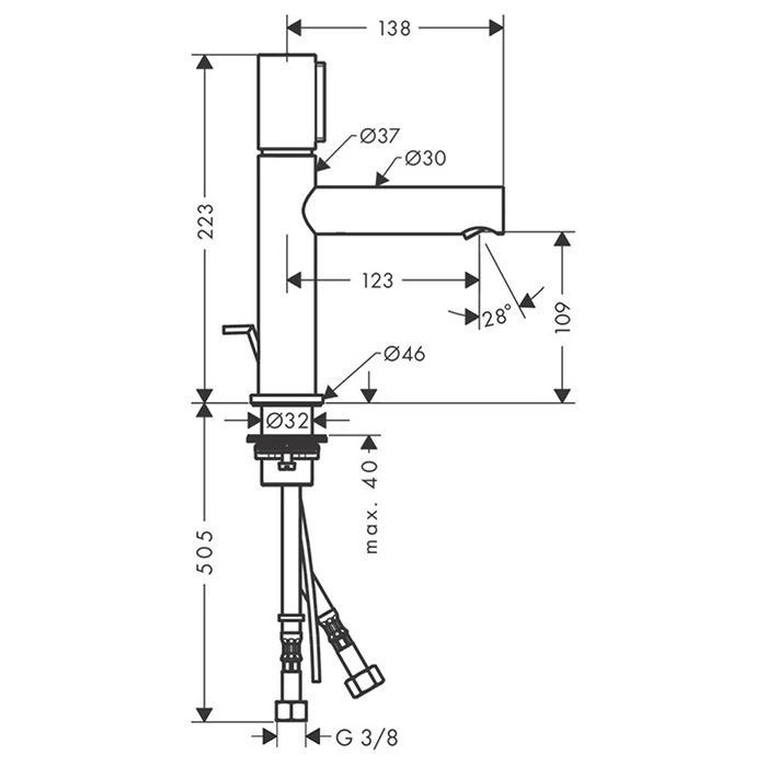 Смеситель для раковины AX Uno 110 с донным клапаном, хром (45010000)
