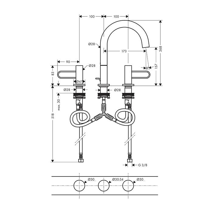Данная модель смесителя предназначена для установки на раковину или столешницу (монтаж на горизонтальную поверхность). Стандартное межосевое расстояние для подключения составляет 200 мм.