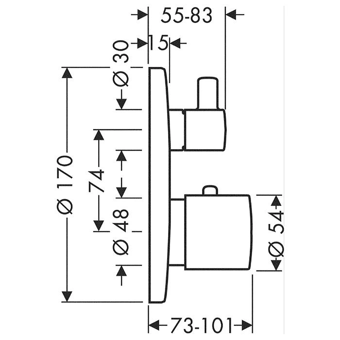 - Тип: термостатический смеситель для душа скрытого монтажа.