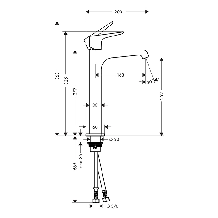 Модель AXOR Citterio E (36113250) оснащена рычаговым управлением. Один рычаг позволяет легко и точно регулировать силу напора и температуру воды.