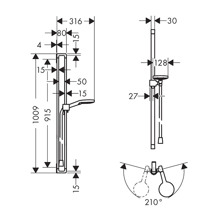 Обратите внимание на длину штанги - 900 мм. Это оптимальный размер для большинства ванн и душевых кабин стандартной высоты. При монтаже в нишу или под наклонный потолок заранее проверьте, чтобы у вас был запас по высоте для удобного регулирования лейки.