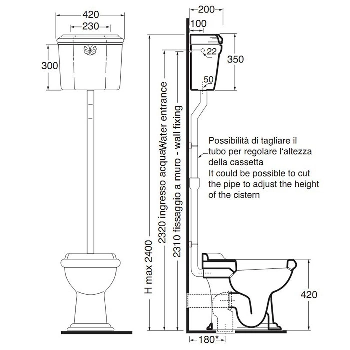 Навесной унитазный бачок AZZURRA JUBILAEUM высокий: гигиеничный фарфор и тихая арматура
