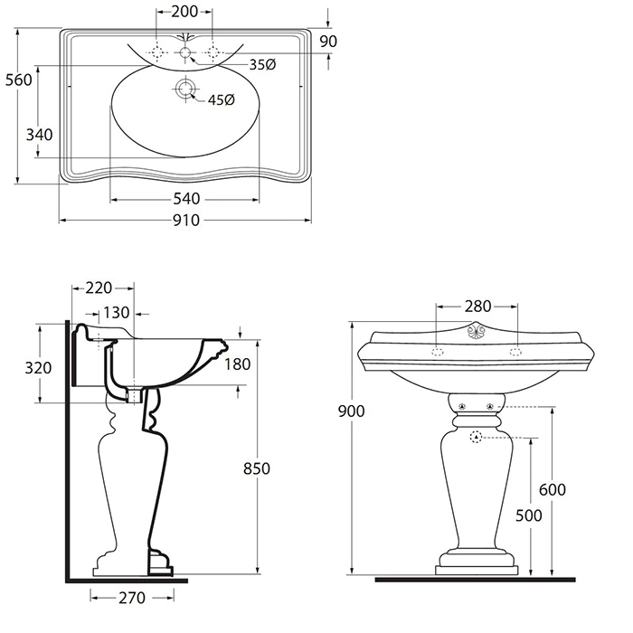 Габаритные размеры умывальника составляют 91 см в ширину и 56 см в глубину. Такие параметры делают модель оптимальным выбором для просторных ванных комнат или совмещенных санузлов, где требуется большая и удобная рабочая поверхность. Перед покупкой необходимо замерить выделенное под установку место с учетом подводки коммуникаций.