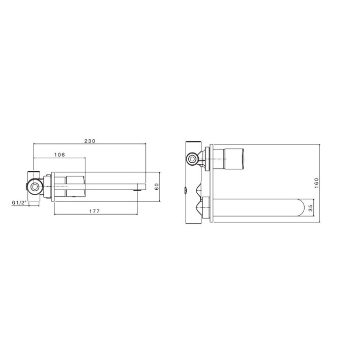 Настенный встраиваемый смеситель для раковины AZZURRA LINEA, хром, излив 177 мм (AZ P19cr)