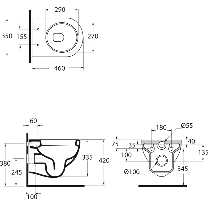 - Компактный дизайн: Небольшая глубина и высота чаши оптимальны для малогабаритных помещений.