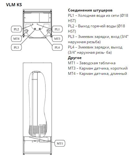 Особенностью конструкции стали три патрубка 3/4": два для подключения к отопительному контуру и один для рециркуляции. Модель не имеет встроенного ТЭНа, что снижает энергопотребление системы.