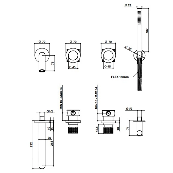Перед покупкой встраиваемой модели тщательно оцените состояние и материал вашей монтажной стены (перегородки). Для надежного монтажа скрытого блока смесителя Bongio Time 2020 необходима капитальная стена достаточной толщины (например, из кирпича, бетона или газобетона) или прочный каркас с последующей обшивкой влагостойким материалом (ГКЛВ, СМЛ, аквапанель). Монтаж в гипсокартонную перегородку без дополнительного усиления каркаса недопустим — это приведет к люфту и возможной поломке.