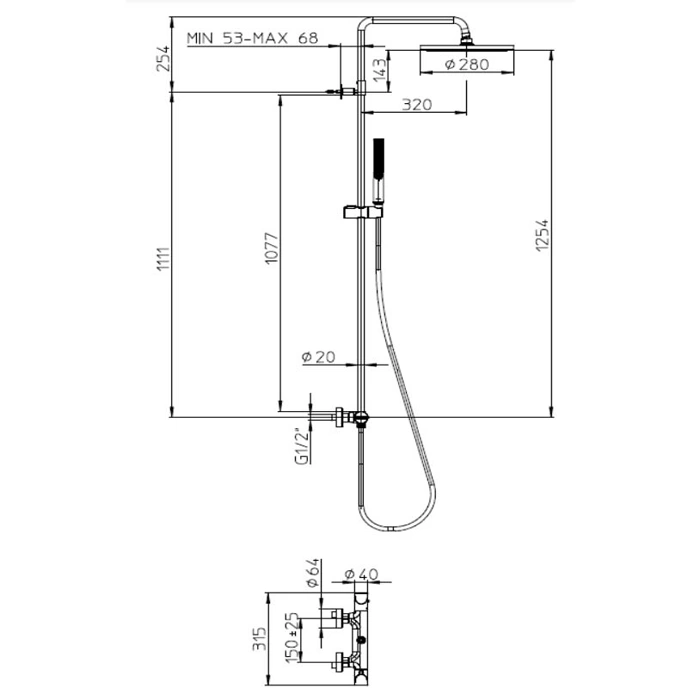 В набор L10507.030 входит все необходимое для установки: стойка для душа с верхним душем, термостатический смеситель с изливом, ручной душ, гибкая подводка, крепежные элементы и душевая лейка.