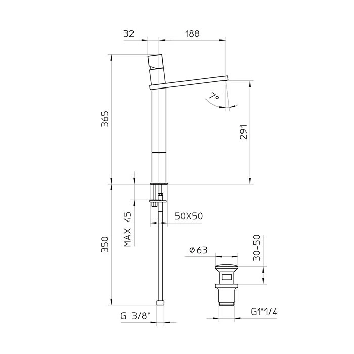 Смеситель для раковины Bossini Cube: супер-высокий, с заглушкой 1 1/4, хром (Z004303.030)