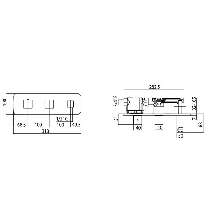 Модель Bossini Cube предназначена для систем со стабильным давлением от 0,5 до 5 бар. Она совместима со стандартными душевыми стойками и подводками. Монтаж осуществляется на стену, схема подключения - традиционная (холодная/горячая вода). Система быстрого монтажа упрощает установку и выравнивание.