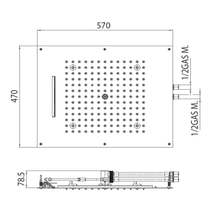 Обратите внимание на тип подключения и размеры. Эта модель - верхний душ, он монтируется в потолок или в стену сверху. Нужна ниша или пространство над фальш-потолком для монтажной коробки и подводки. Замерьте высоту потолка в душевой: если она менее 2.3 метра, мощная струя из такого «дождя» может бить прямо в макушку, что некомфортно. Идеально - от 2.5 м.