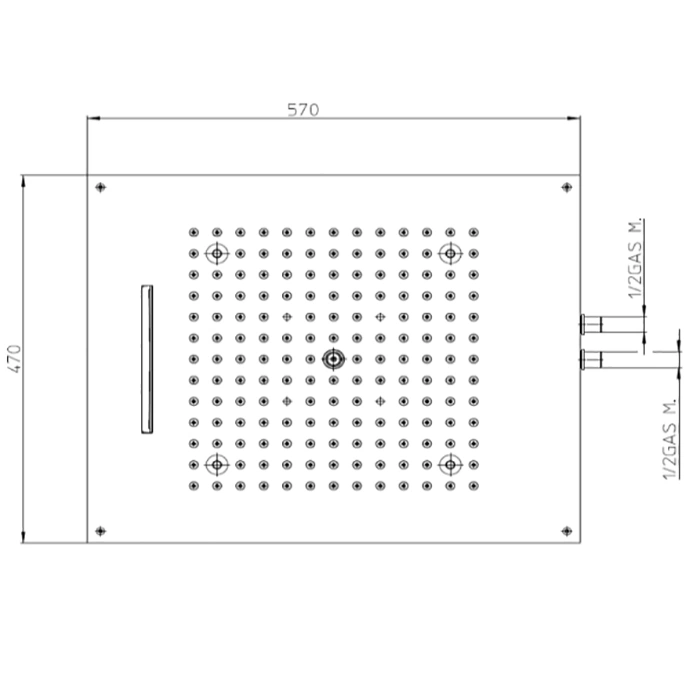 Эргономичная квадратная лейка большого формата для полного охвата тела равномерным тропическим дождем.