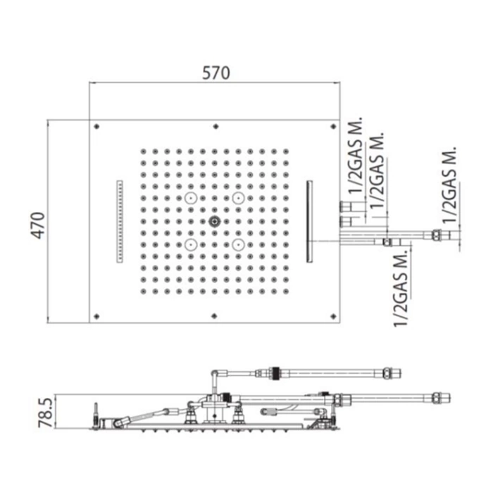 Размер панели верхнего душа составляет 57х47 см. Перед покупкой необходимо замерить свободное пространство в душевой кабине или над ванной, учитывая не только ширину и высоту, но и необходимые отступы для подключения коммуникаций. Этот размер является стандартным и подходит для большинства типовых кабин.