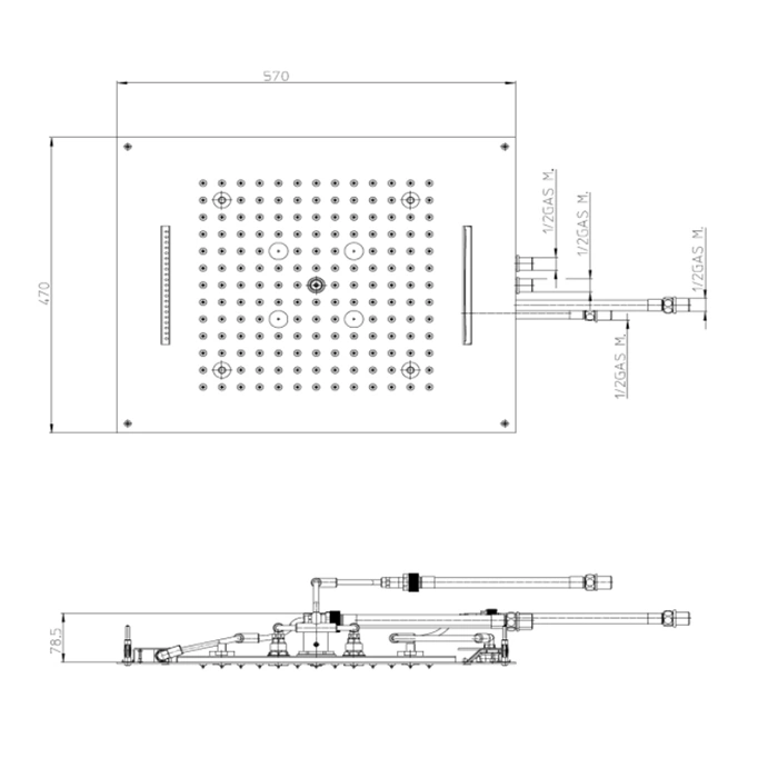 Перед покупкой обязательно оцените высоту потолка в вашей душевой кабине или над ванной. Габариты панели 57х47 см - это солидная площадь. Для комфортного ощущения и чтобы не стоять, буквально пригнув голову, расстояние от лейки душа до пола должно быть не менее 190-200 см. Учитывайте это, если у вас низкие потолки или горизонтальная подводка коммуникаций проходит слишком низко.